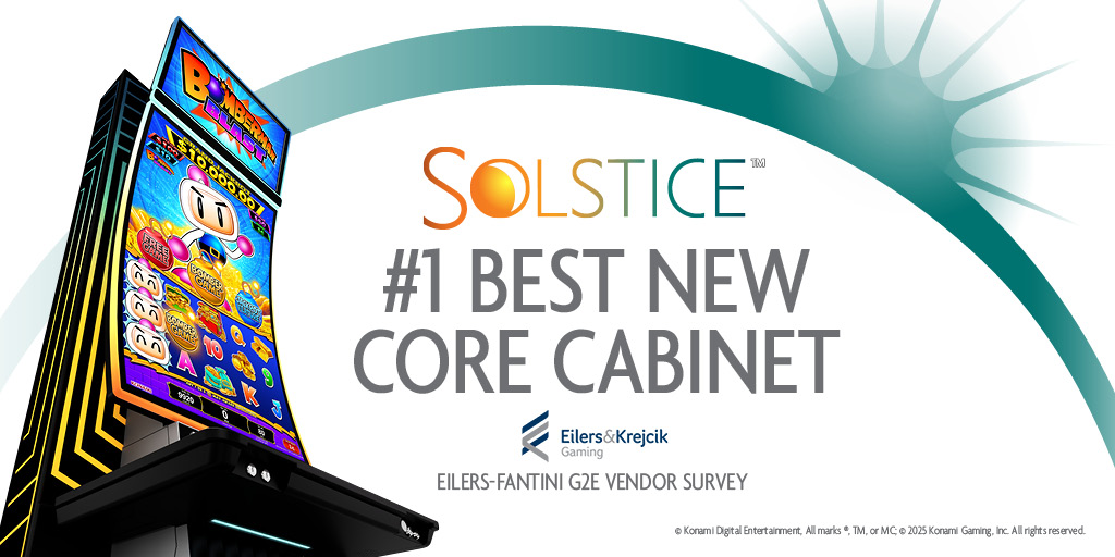 Konami Gaming, Inc. and its Solstice™ casino game machine achieved the No. 1 spot in EILERS – FANTINI G2E Vendor Survey - 2025 for “Best New Core Cabinet”. Based on poll responses gathered from slot directors by research firm Eilers & Krejcik Gaming, Konami’s Solstice was voted No. 1 “Best New Core Cabinet” displayed during the 2025 Global Gaming Expo (G2E) Las Vegas. Solstice marked its world premiere at the event, where thousands experienced the machine and its original game library for the first time.
