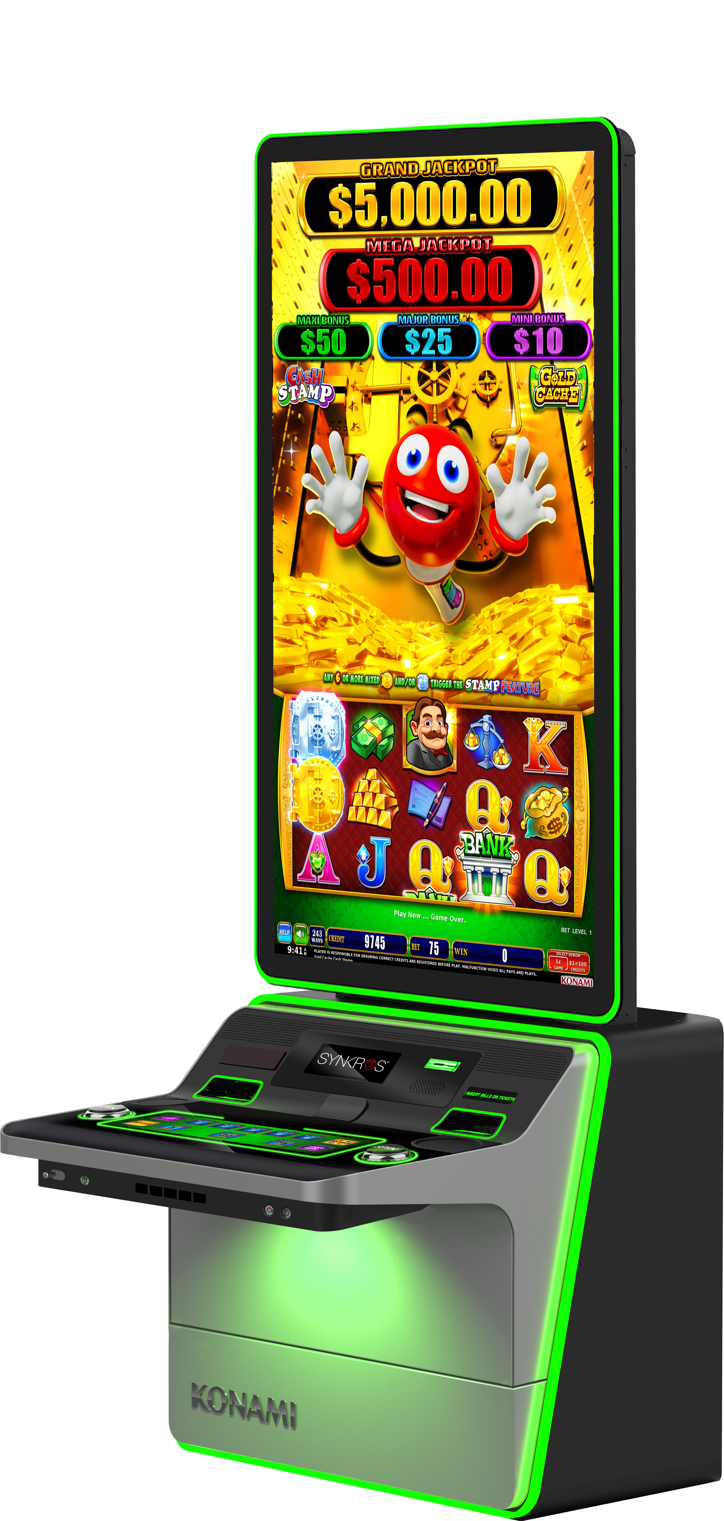 - Once a line of 5 credit prizes is achieved, the Cash Stamp sequence activates; all bonus prizes are unlocked and all prizes are collected into the Total Win meter, with the collected symbols being removed from reels.